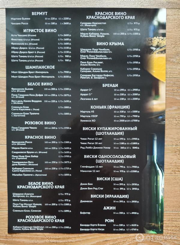Меню и атмосфера